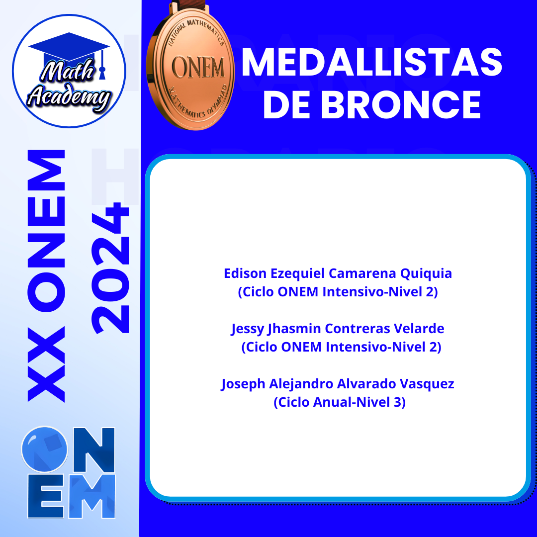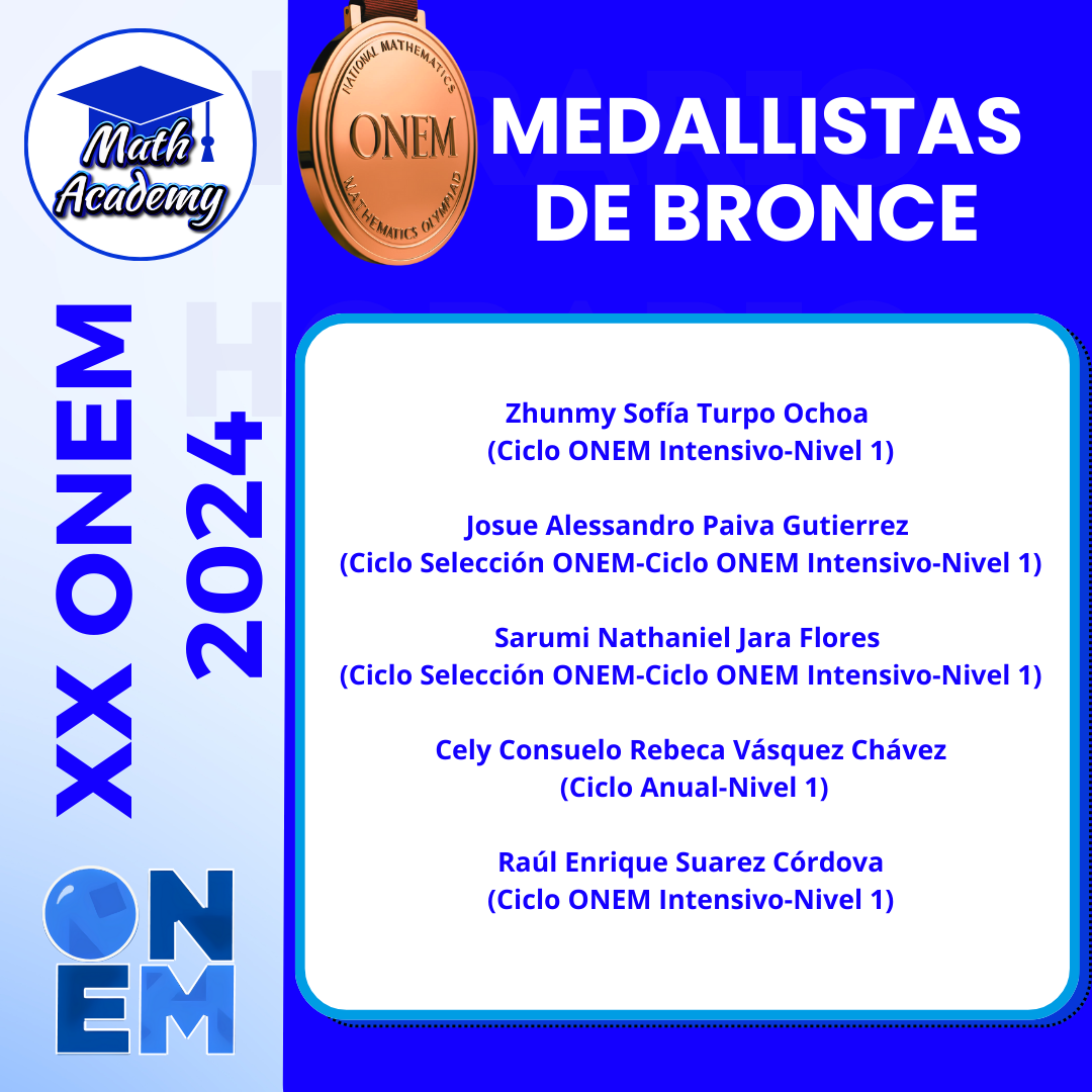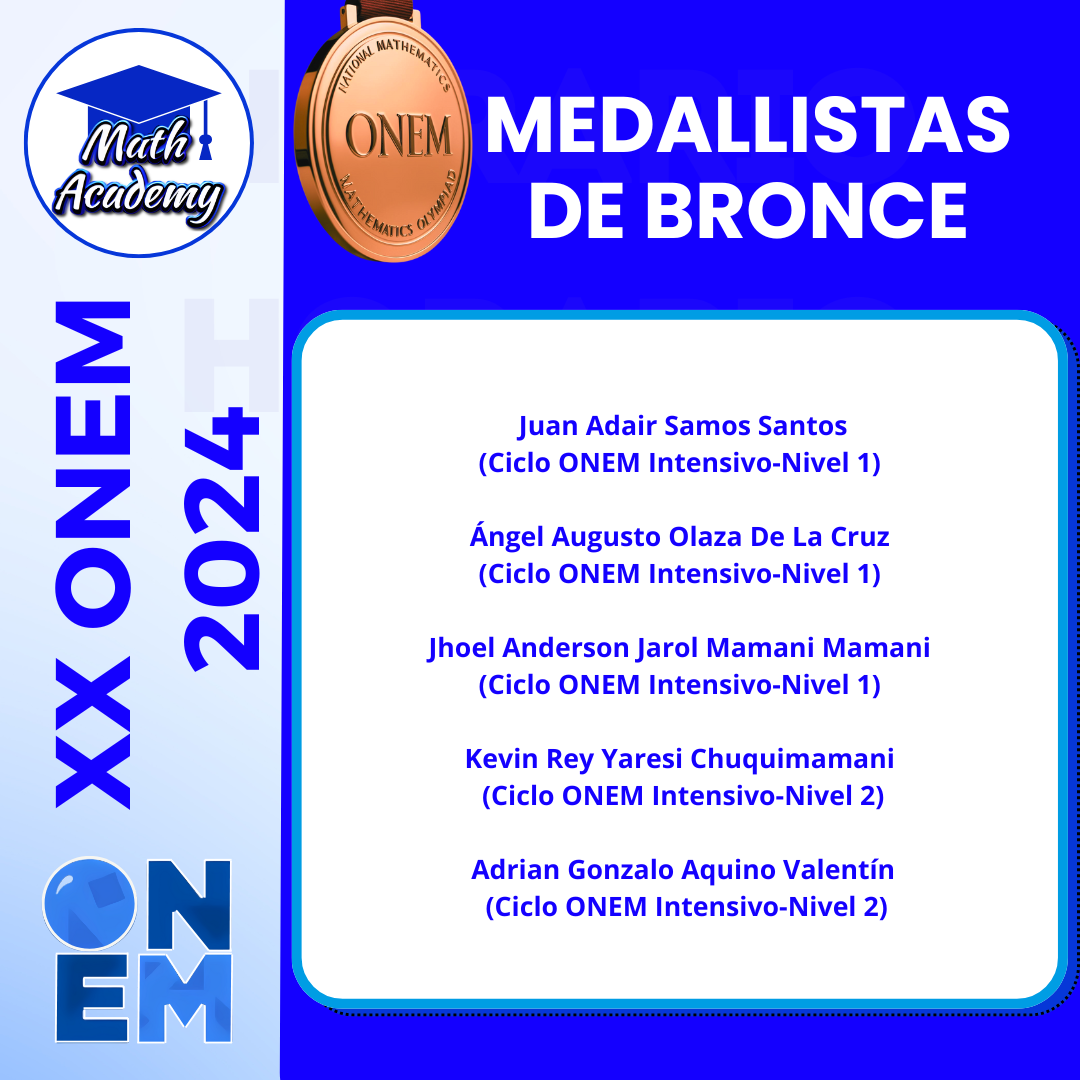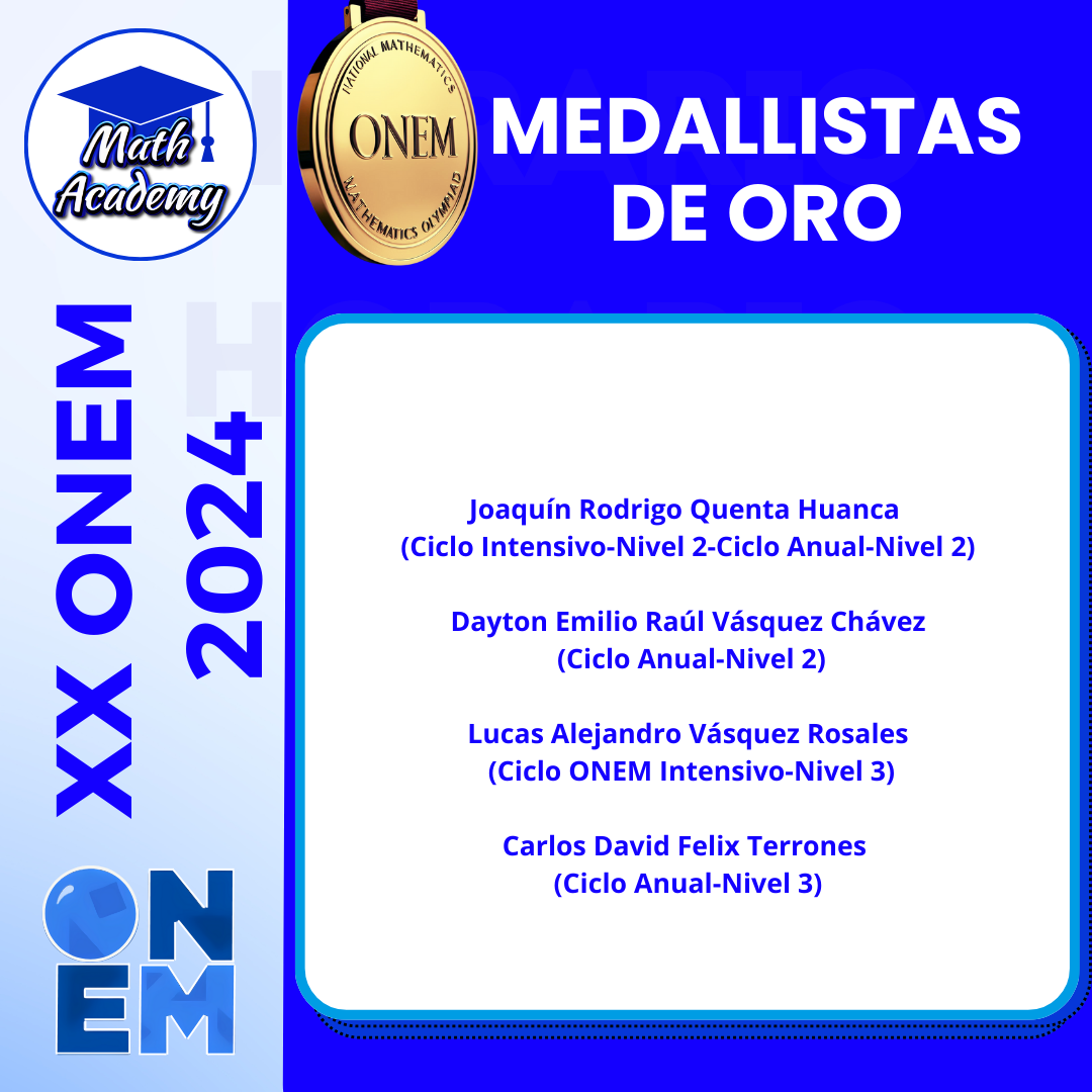 Pese a que ya estoy culminando mis estudios, me sirvió mucho está preparación. Ojalá que lleguen a más alumnos para que desde un inicio formen a ganadores y futuros olímpicos no solo en la onem si no internacionalmente. Bendiciones y les deseo muchos éxitos